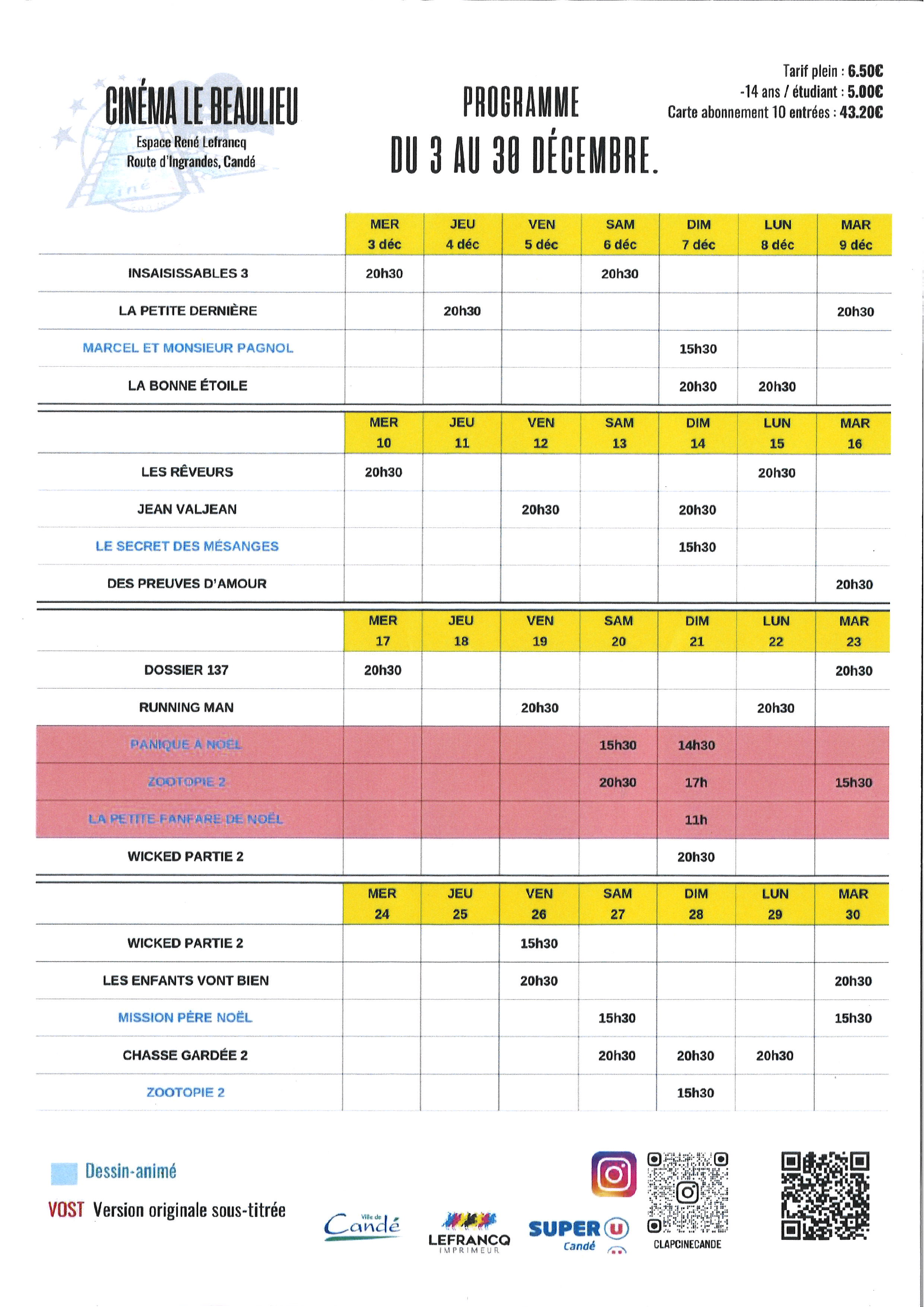 PROGRAMME CINÉMA DE DÉCEMBRE