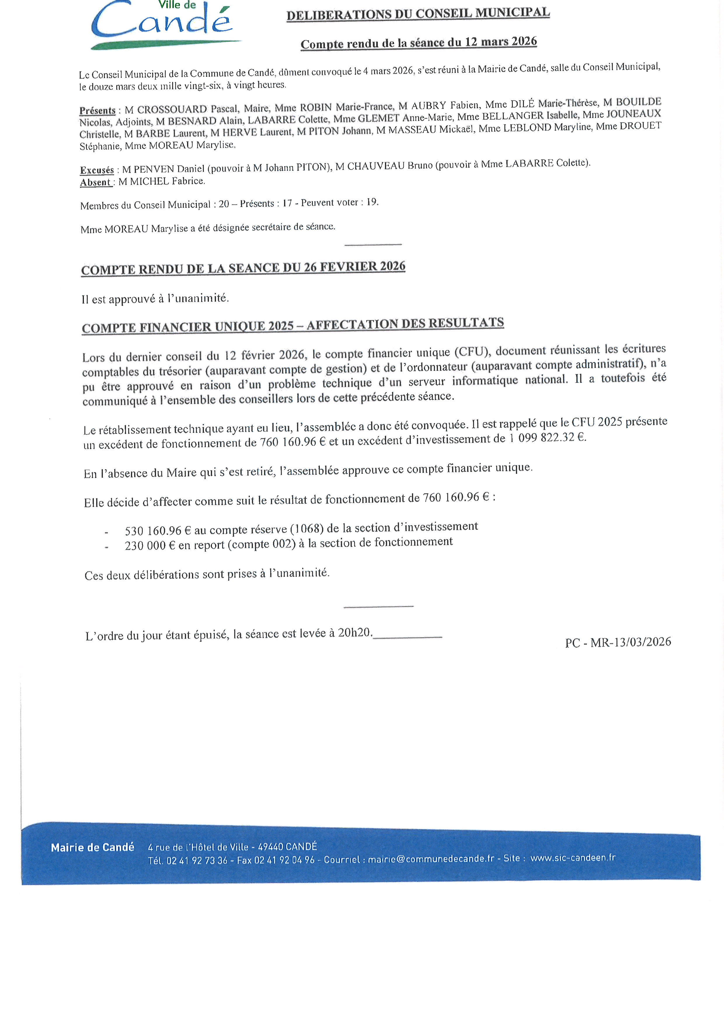 COMPTE RENDU DU CONSEIL MUNICIPAL