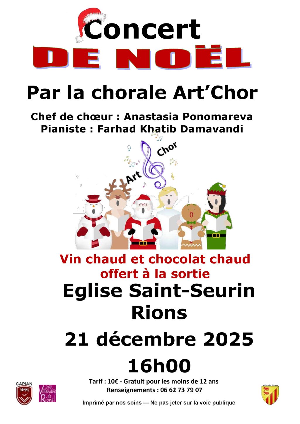 La chorale Art’Chor chante Noël le dimanche 21 décembre à 16h, Eglise Saint-Seurin à Rions.