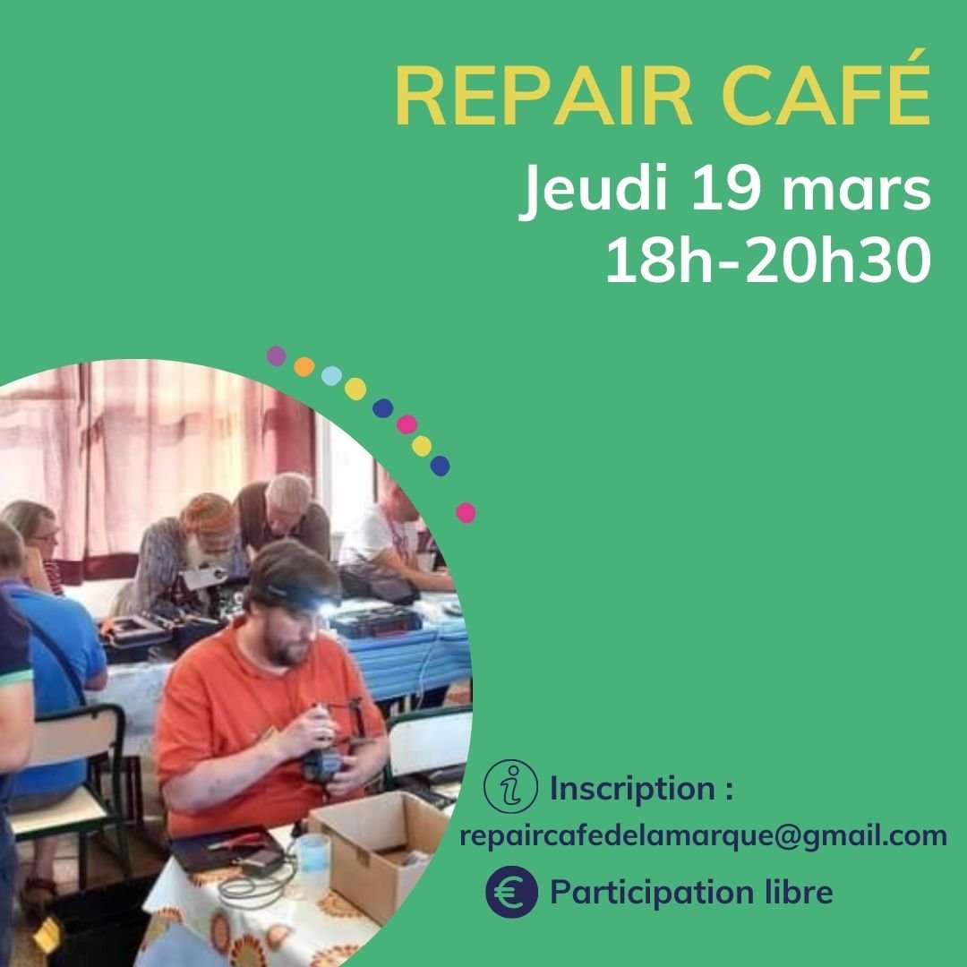 Lors de l'inscription, merci de préciser l'objet à réparer et la panne observée (un objet par personne).
