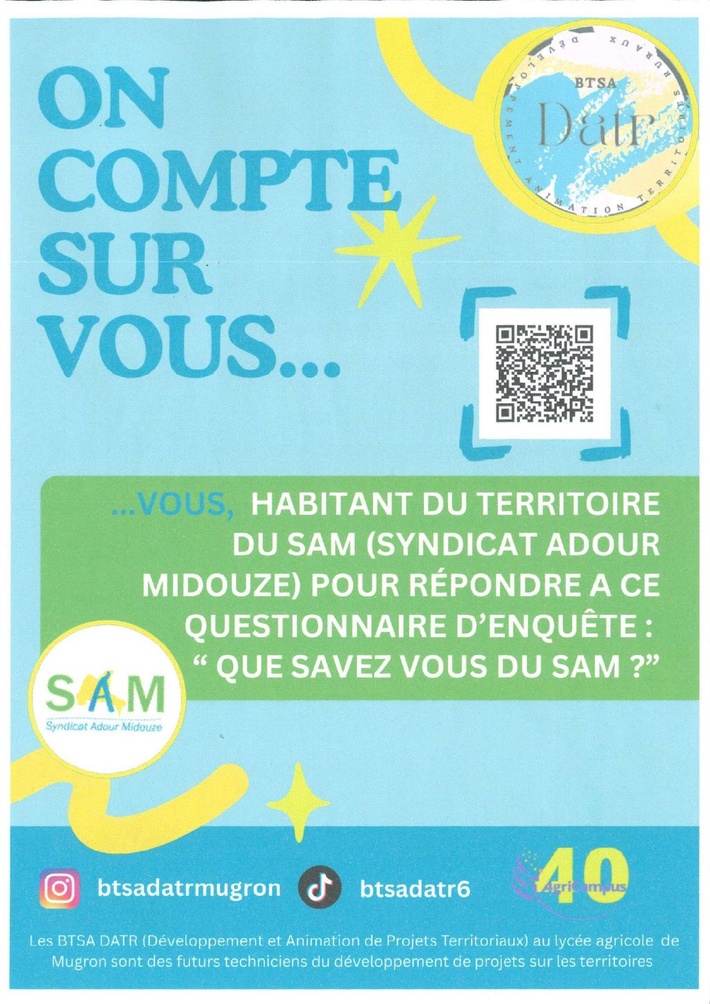un questionnaire d'enquête sur la thématique "Que savez-vous du SAM ?"