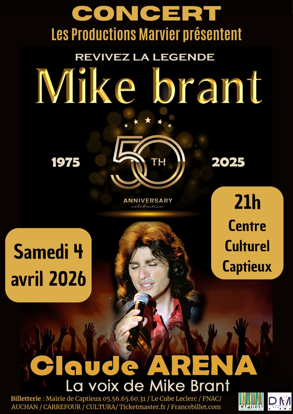 Billetterie : Mairie de Captieux 05.56.65.60.31 / Le Cube Leclerc / FNAC / AUCHAN / CARREFOUR / CULTURA/ Ticketmaster.fr / Francebillet.com