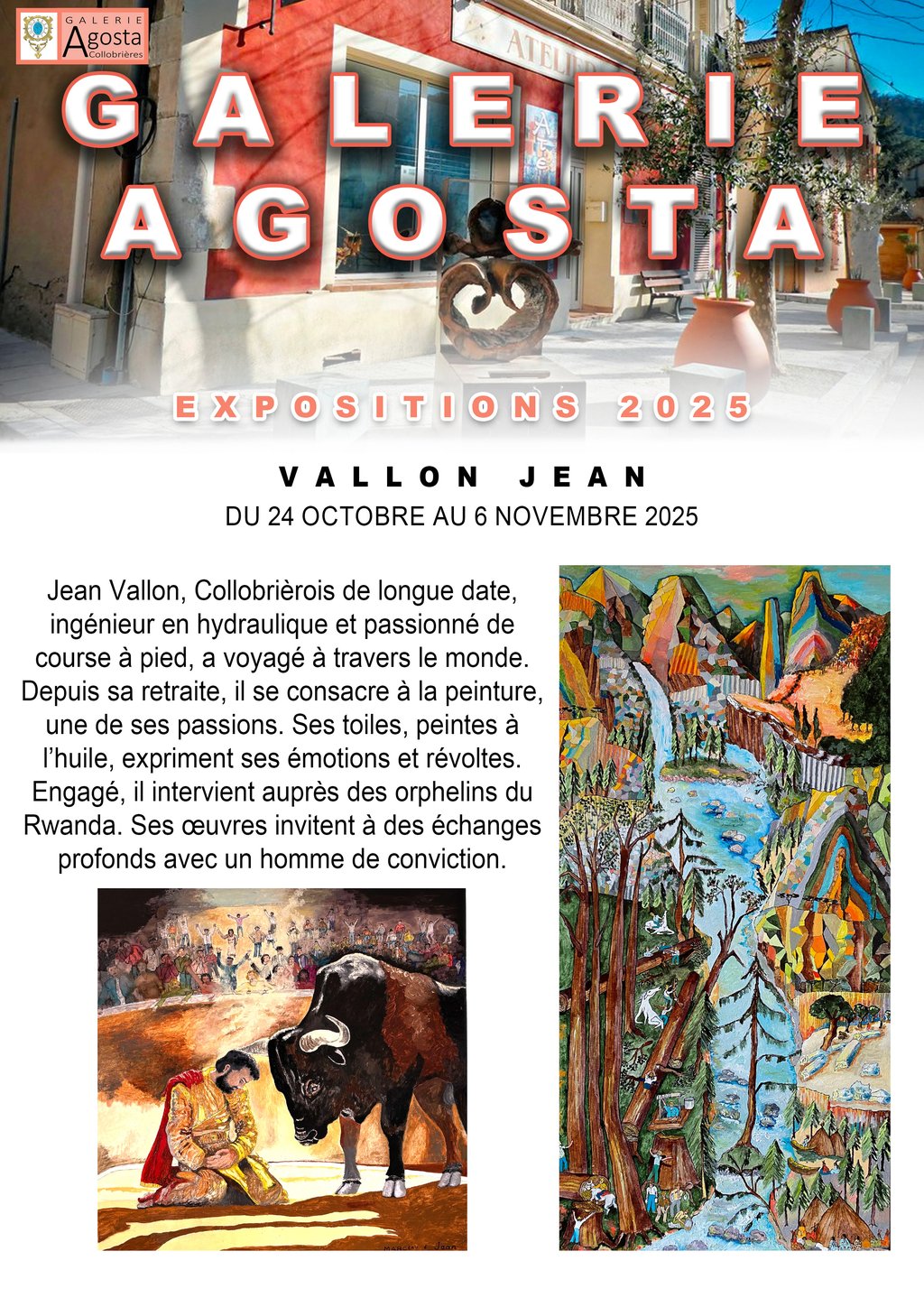 Jean Vallon, Collobrièrois de longue date, ingénieur en hydraulique et passionné de course à pied, a voyagé à travers le monde. Depuis sa retraite, il se consacre à la peinture, une de ses passions. Ses toiles, peintes à l’huile, expriment ses émotions et révoltes. Engagé, il intervient auprès des orphelins du Rwanda. Ses œuvres invitent à des échanges profonds avec un homme de conviction.