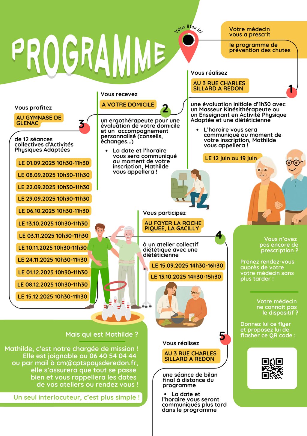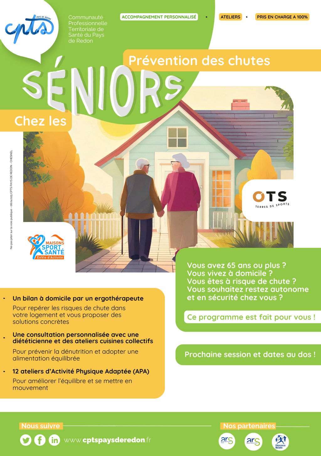 La CPTS Pays de Redon propose un programme pour la prévention des chutes pour les personnes de 65 ans et plus, avec des ateliers collectifs à Redon ou à La Gacilly.