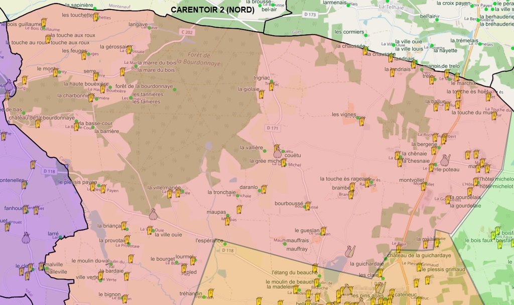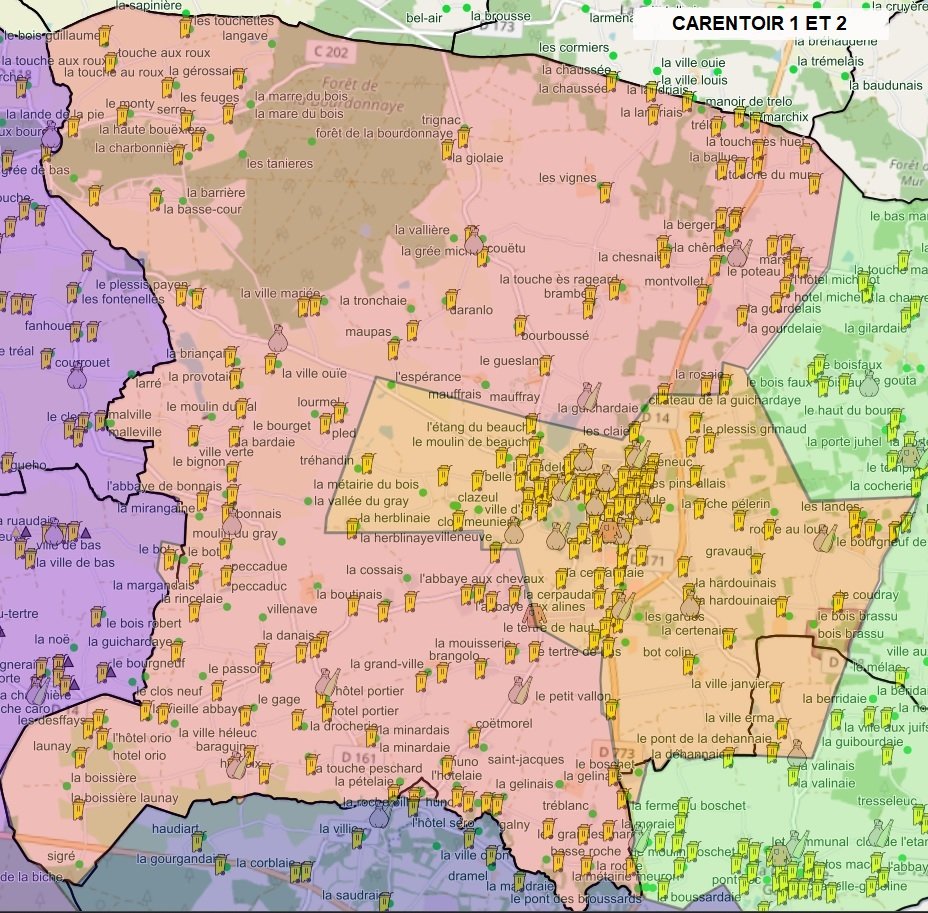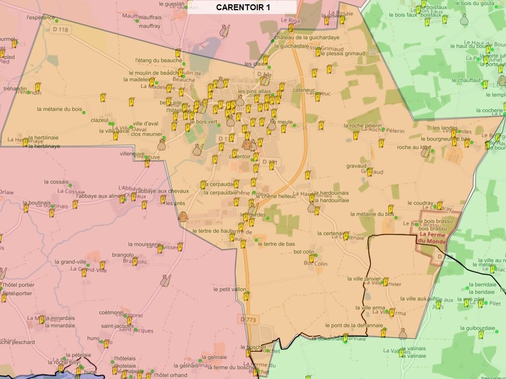 *Carentoir 1 (centre bourg et une partie de la campagne sur Clazeul / La Herblinaye) : collecte le lundi matin en semaine paire