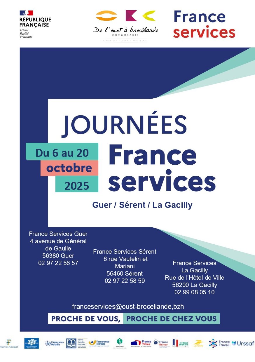 Les antennes France Services De l'Oust à Brocéliande communauté vous ouvrent leurs portes à La Gacilly, Guer et Sérent.