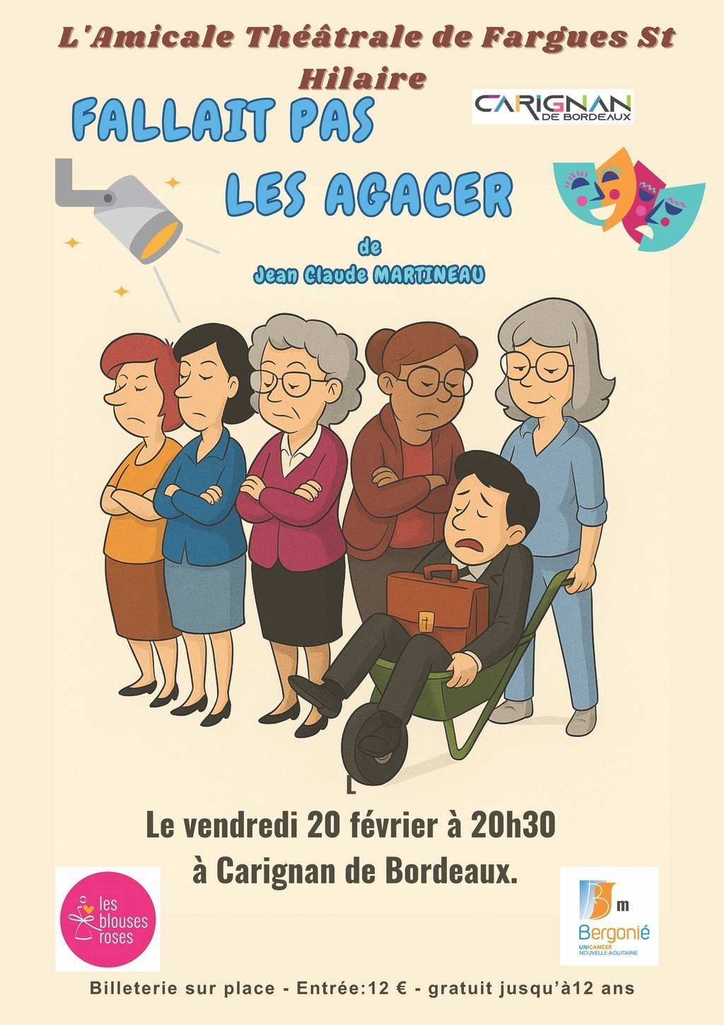 L'Amicale Théâtrale de Fargues St Hilaire vous présente sa pièce Fallait pas les agacer de Jean-Claude Martineau
