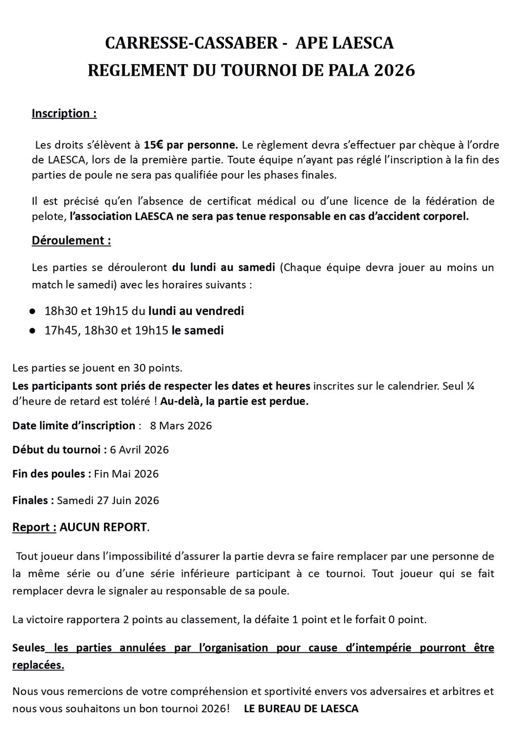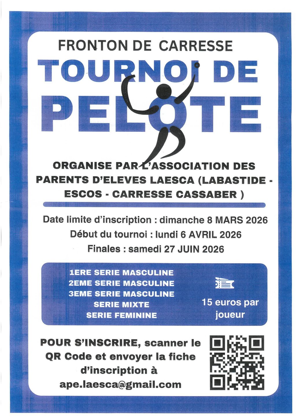 INSCRIPTION TOURNOI DE PELOTE organisé par l'APE LAESCA