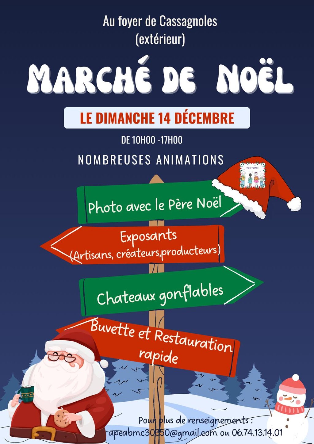 Marché de Noël le dimanche 14 décembre de 10h00 à 17h00 au foyer de Cassagnoles (extérieur) organisé par l'APE