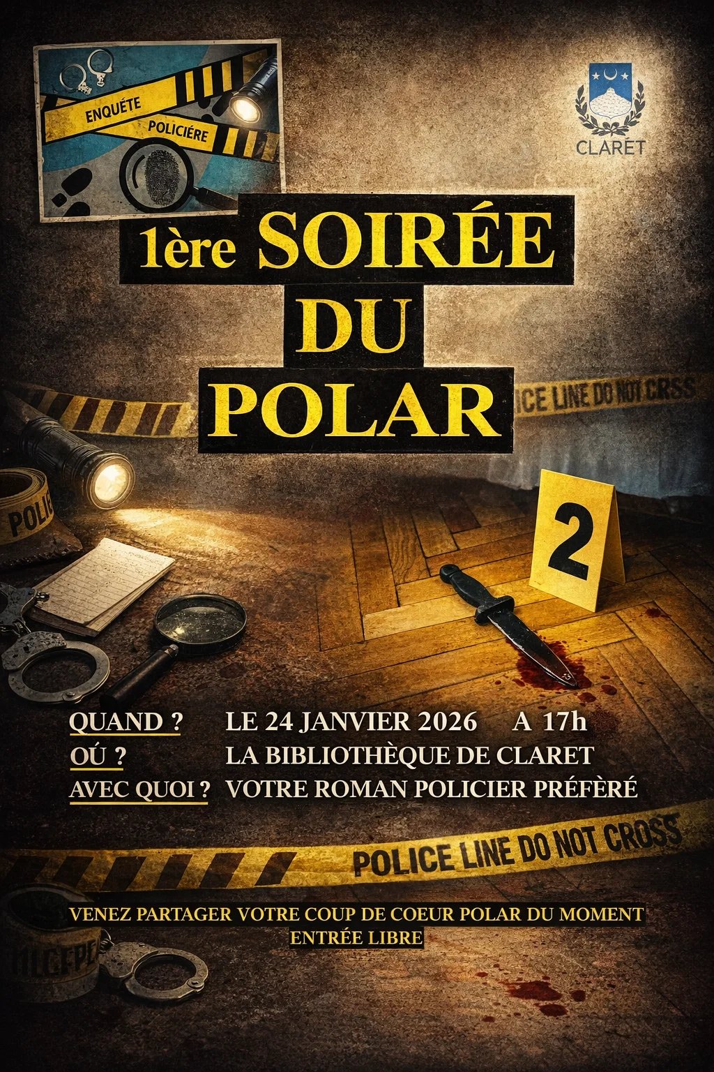 Le samedi 24 janvier, de 17h à 20h, la bibliothÚque vous propose une Soirée Polar, organisée par ses bénévoles