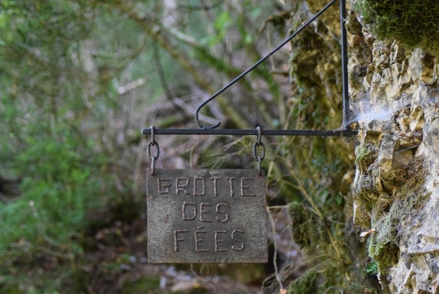 On atteint le lieu-dit "Les marmites", des cavités de forme circulaire taillées dans la roche qui forment le lit des cours d'eau. Traverser en empruntant la passerelle et remonter en face entre les buis (table de lecture) pour rejoindre une piste. Suivre cette piste pendant 800 mètres jusqu'à découvrir à gauche la grotte des fées (table de lecture).