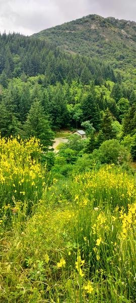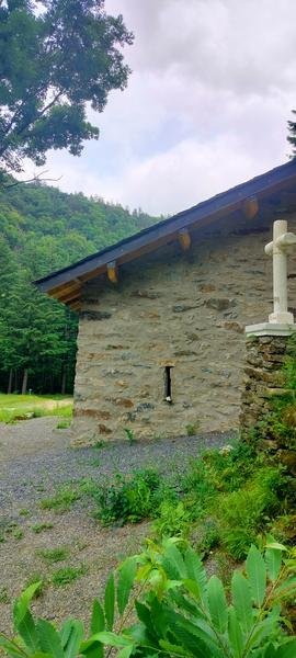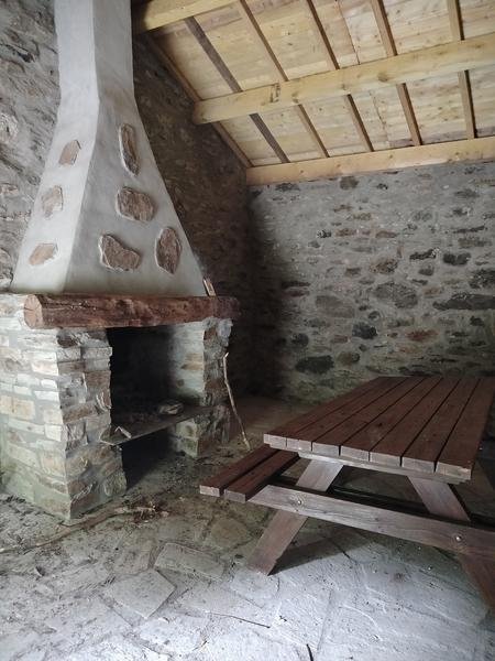 Halte sur le GR653 avant d'entamer l'ascension vers Murat-sur-Vèbre, aire couverte dans une ancienne bergerie équipée d'une cheminée. Une table à l'extérieur également.