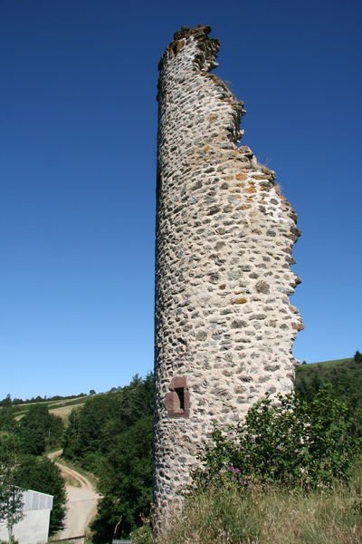 D’autres témoignages viendront, au cours du XIXe siècle, compléter ces informations, et tout particulièrement celui de Victor RASCOL, médecin à Murat : « C'était cinq tours rondes, reliées entre elles par de lourdes constructions massives, au milieu desquelles était percée la porte extérieure s'ouvrant sous une sombre voûte; au bout de cette voûte était le pont-levis, qu'il fallait passer pour arriver à la seconde porte qui donnait entrée au château. Cet ensemble de constructions formait un front de défense formidable en croissant, dont la tour qui reste occupait l'extrémité sud ; cette dernière, comme-celle qui était à l'extrémité opposée, repose sur le rocher massif. »