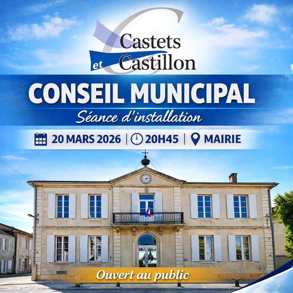 Le Conseil municipal de Castets-et-Castillon s’est réuni le vendredi 20 mars à 20h45 dans le cadre de sa séance d’installation, consécutive aux élections municipales.