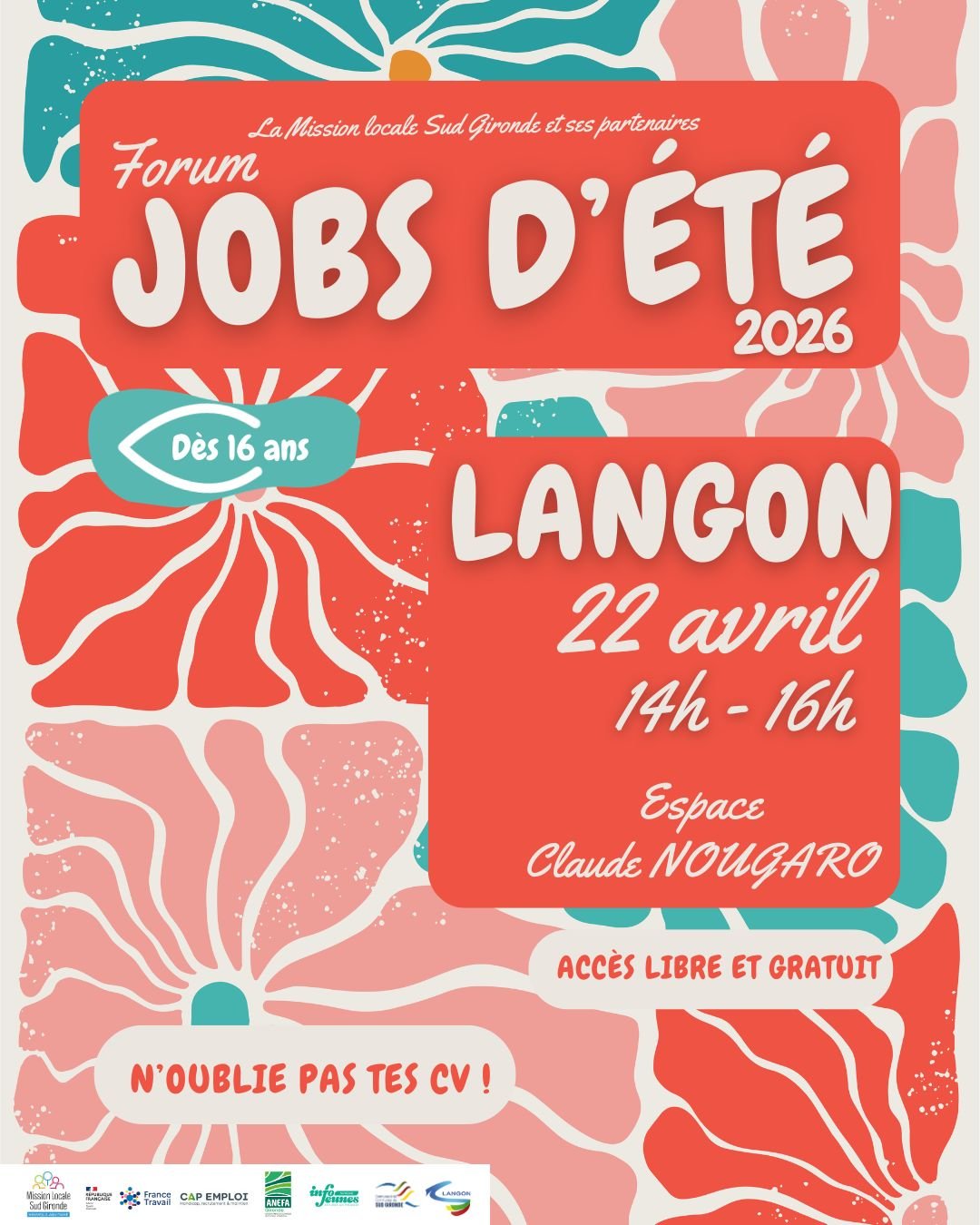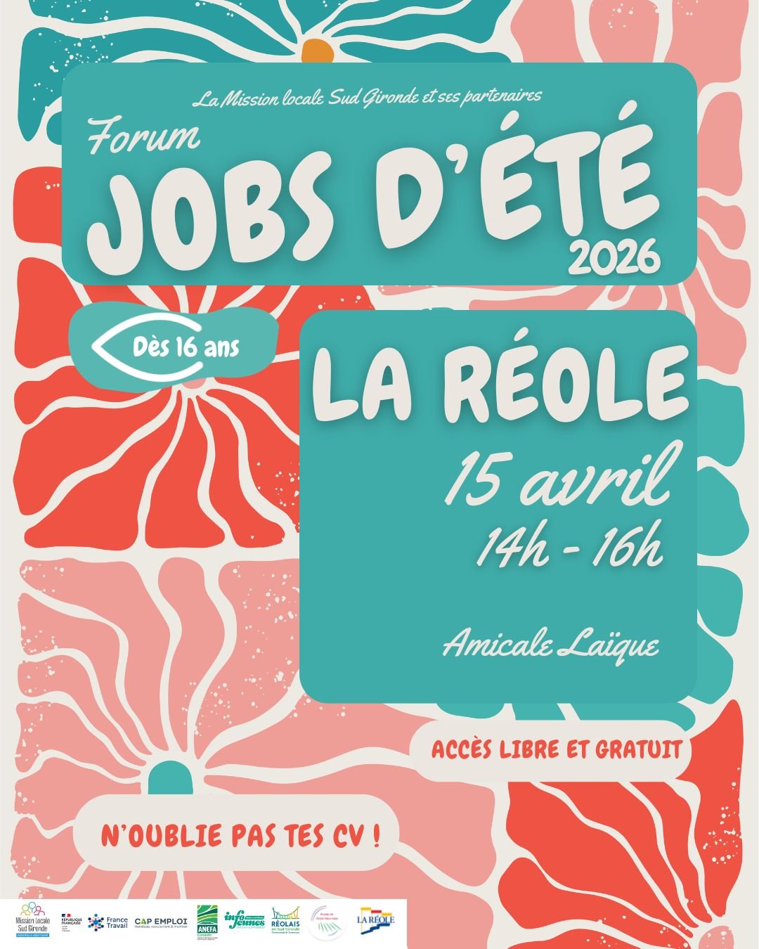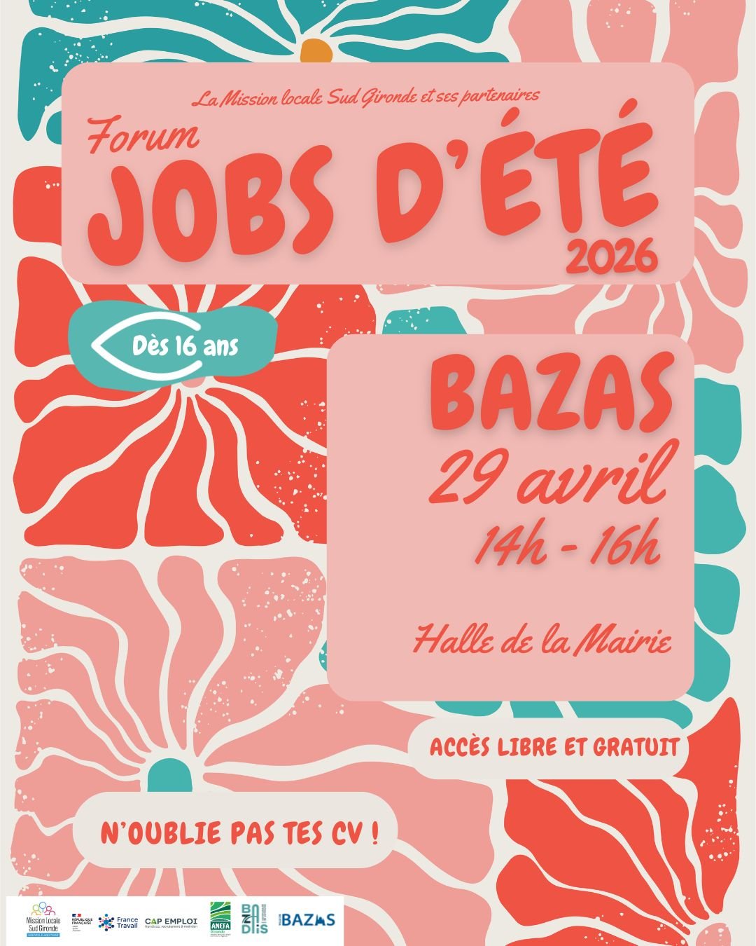 La Mission Locale Sud Gironde, en partenariat avec le Réseau pour l’Emploi (France Travail, Cap Emploi), organise les Forums Jobs d’Été 2026.