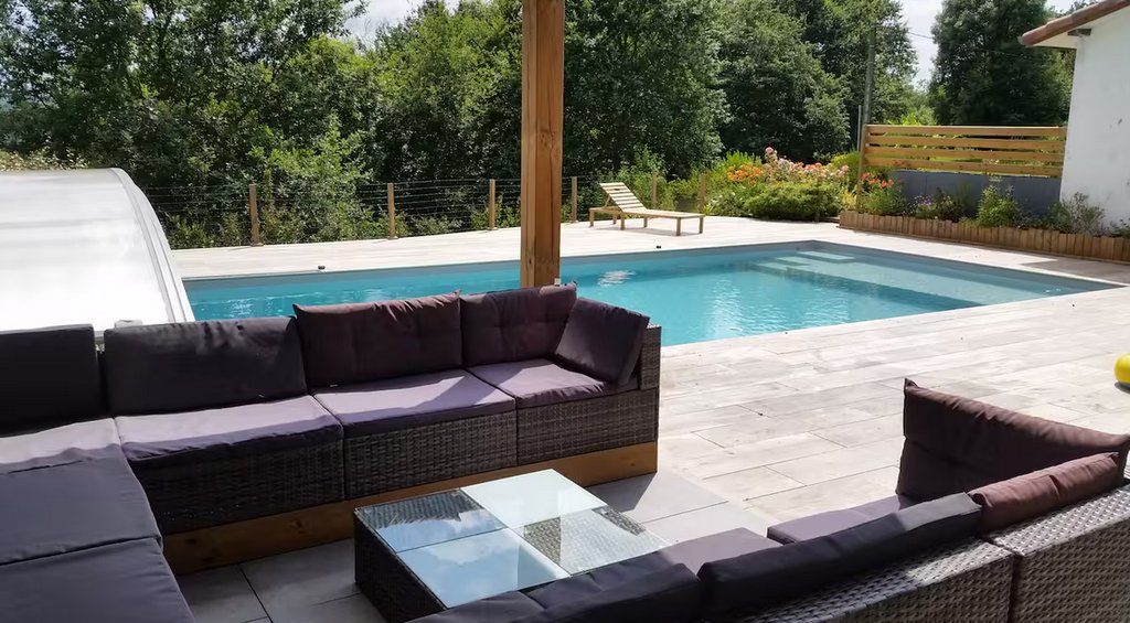 Espaces partagés : piscine 10X5 avec couverture (eau autour de 25° d'avril à novembre), terrain de pétanque, pergola avec salons de jardin, potager, parc, jeux pour enfants.