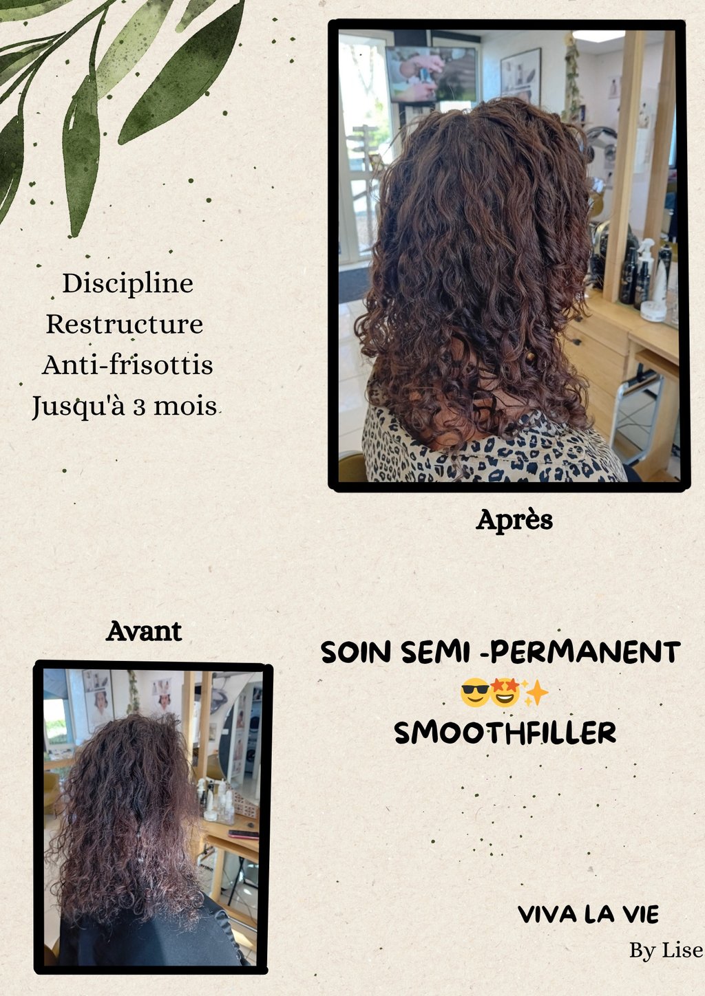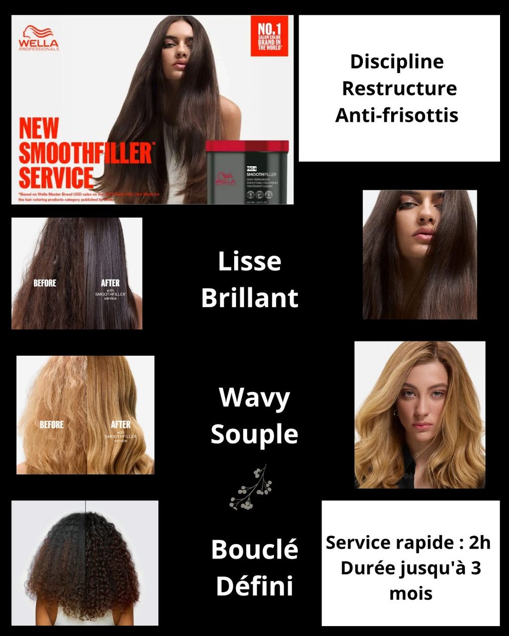 Smoothfiller est un service exclusif ( en salon ) et rapide conçu pour obtenir des cheveux disciplinés et réduire les frisottis en 2h seulement.