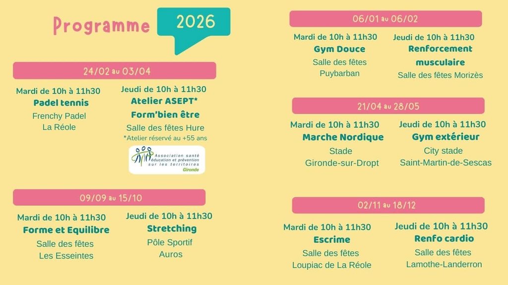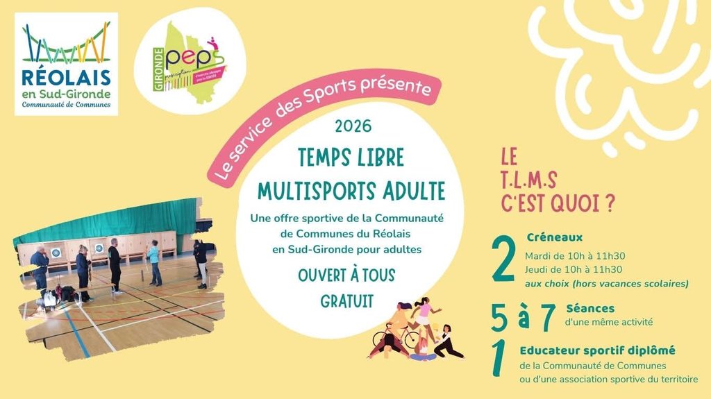 La Communauté de Communes du Réolais en Sud Gironde propose en 2026 des activités sportives encadrées dans différentes communes de notre territoire.