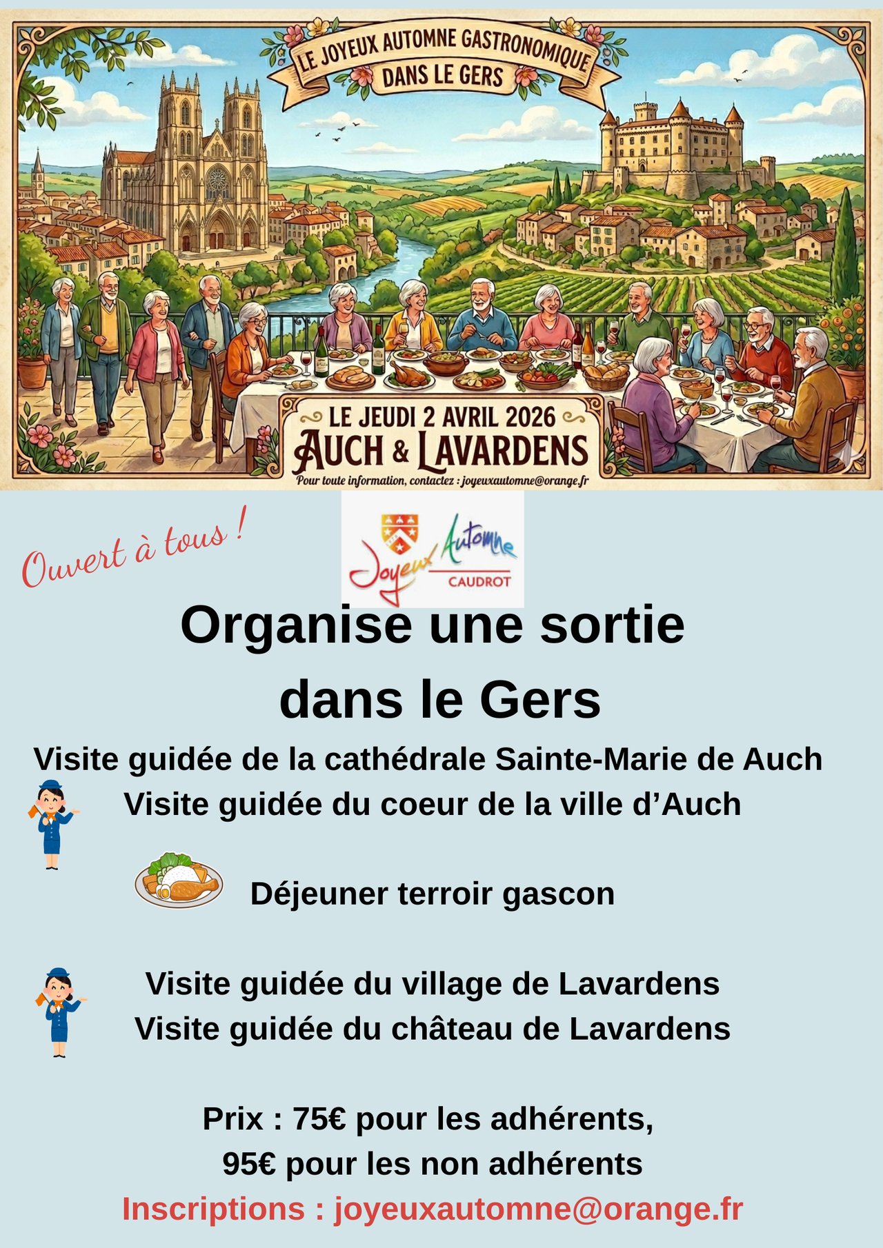 Le Joyeux Automne organise une sortie le jeudi 2 avril dans le Gers avec :