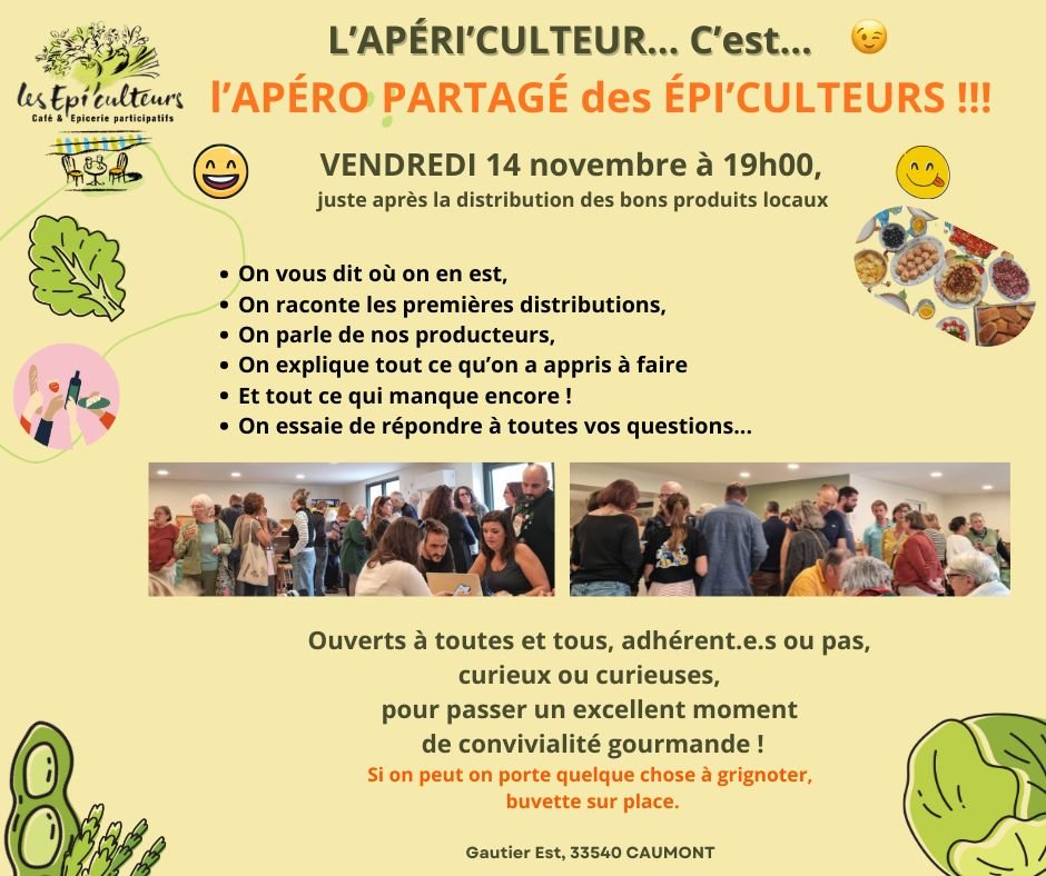 Rejoignez-nous pour notre Apéri'Culteur partagé du jeudi 14 novembre à 19h !