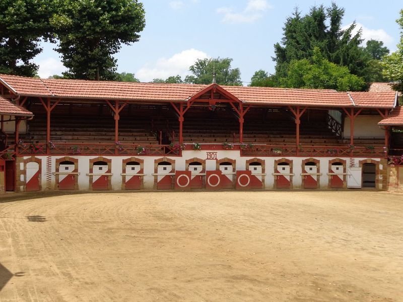Les arènes d’Estang ont été construites au tout début du XXème siècle. Bâties en bois, des poutres de chêne supportent la charpente recouverte de tuiles romanes.