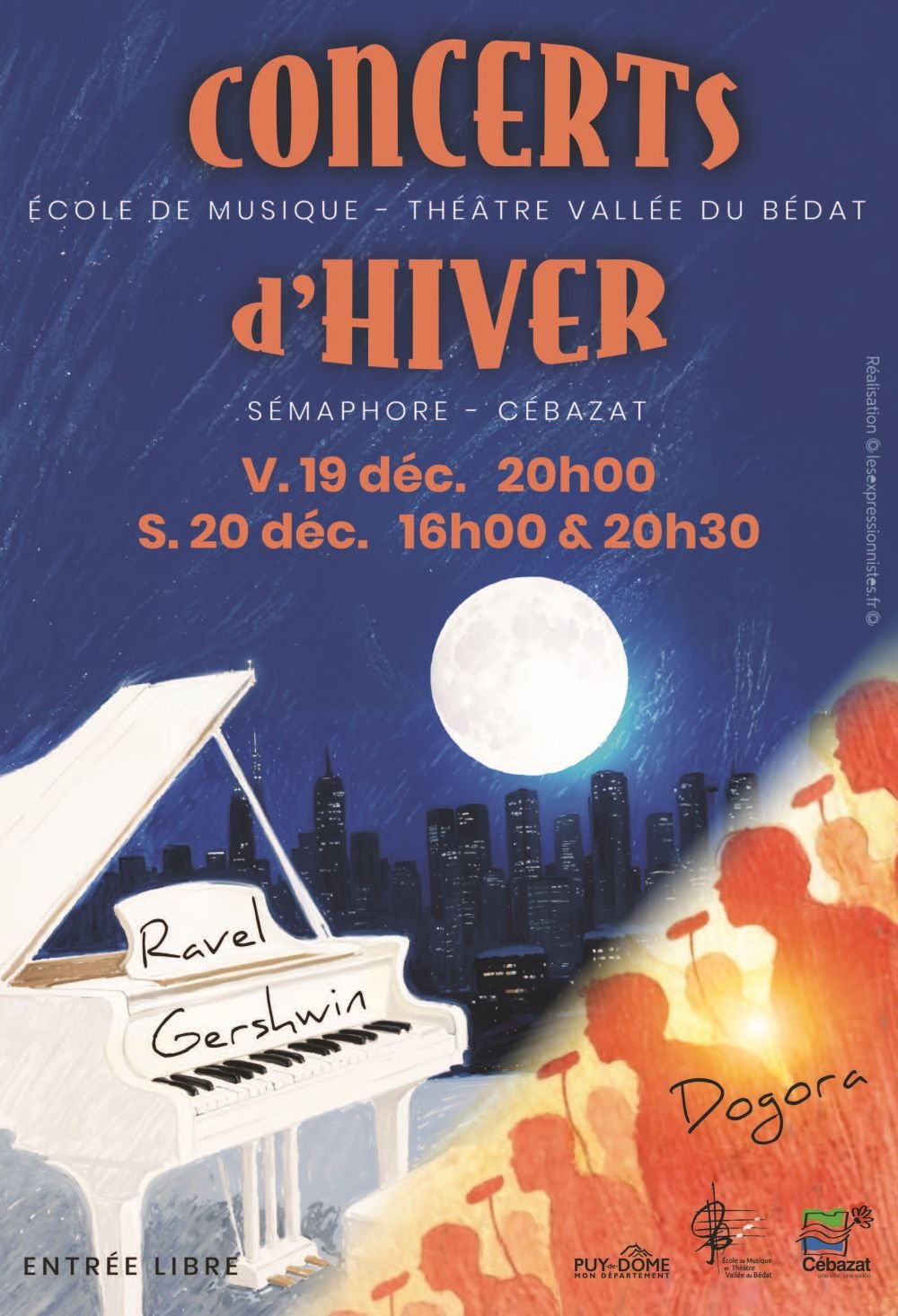 L’école de musique de la Vallée du Bédat vous invite à son incontournable concert d’hiver et vous propose trois dates pour permettre à tous d’assister à ce rendez-vous très fréquenté : vendredi 19 décembre à 20h et samedi 20 décembre à 16h et 20h30.