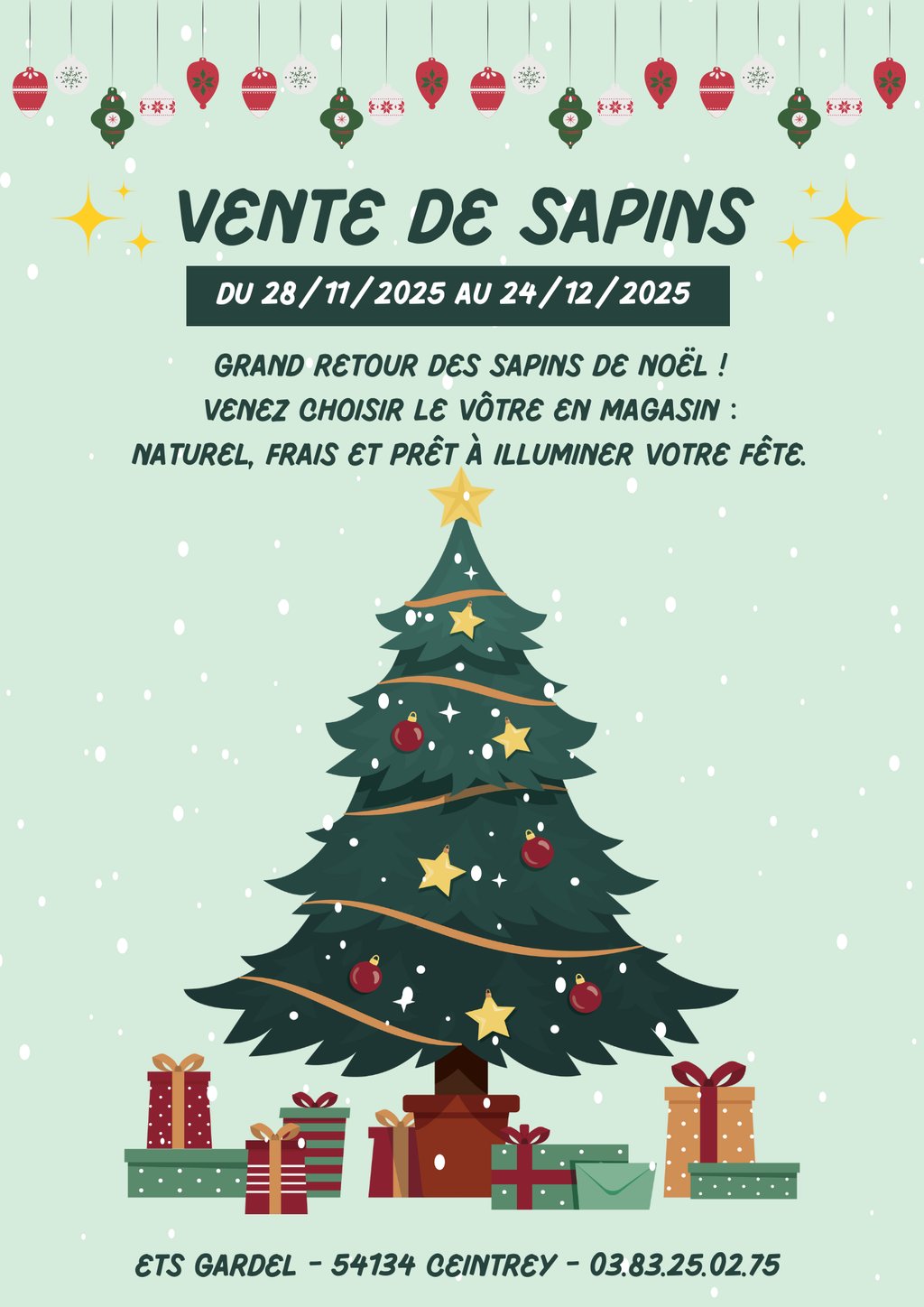 Les établissements Gardel vous invite à choisir votre sapin frais et naturel.
