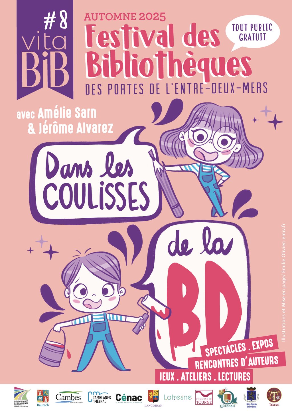 Dans le cadre du festival du réseau des bibliothèques Vita’Bib, la bibliothèque de Cénac vous propose un programme riche et varié autour de la bande dessinée.