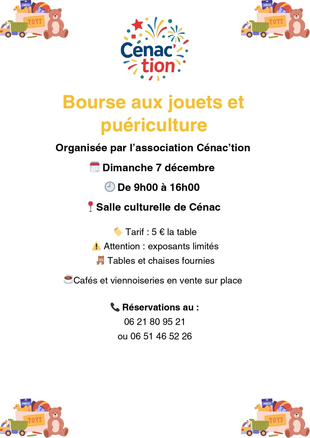 Bourse aux jouets et puériculture organisée par Cénac’tion