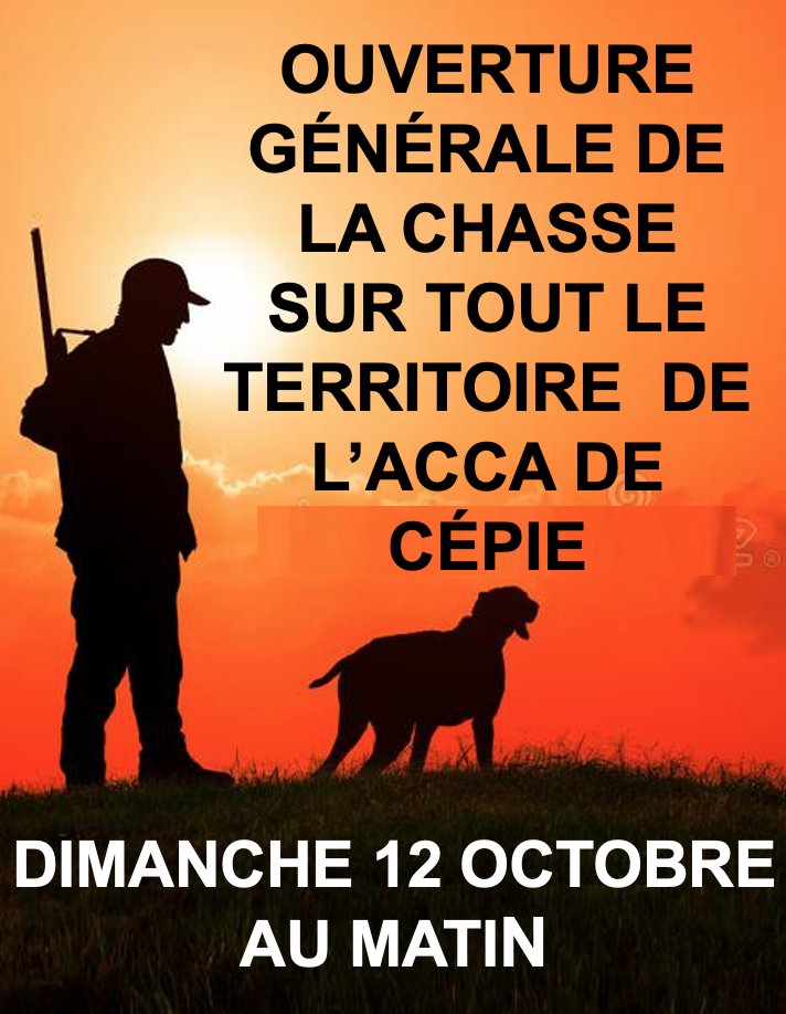 L'ouverture de la chasse sur l'ensemble du territoire de la commune lieu à compter de ce dimanche 12 octobre au matin.