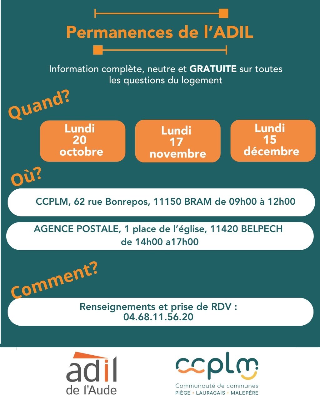 Renseignements ou prise de rendez-vous : 04.68.11.56.20