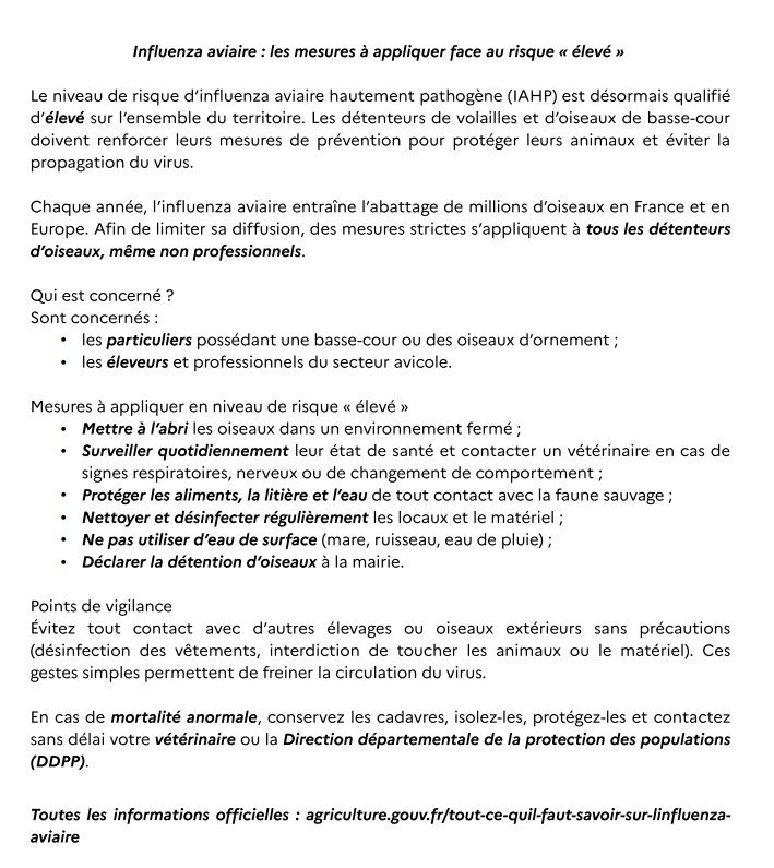 INFLUENZA AVIAIRE - INFORMATION IMPOR...