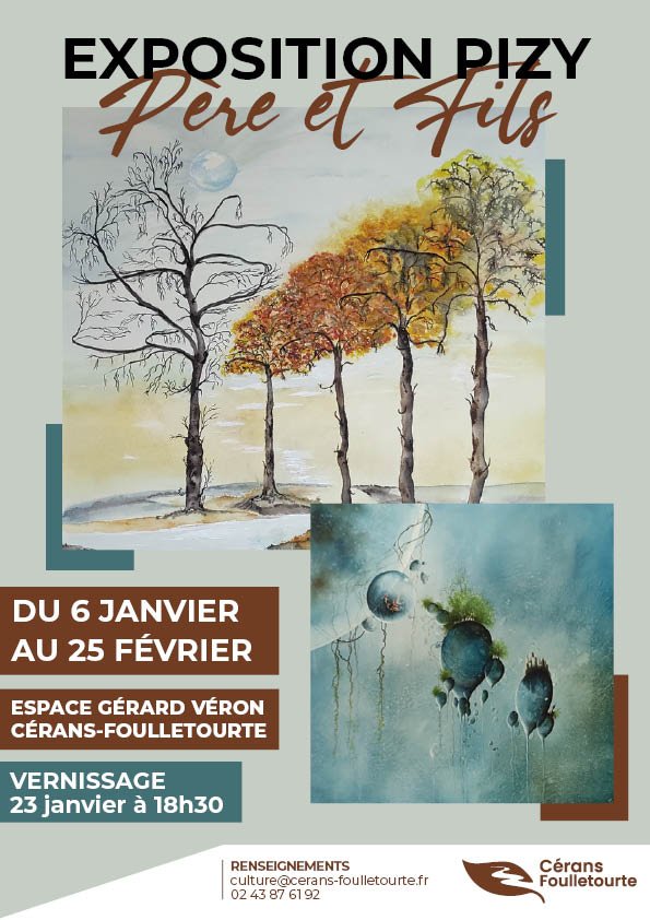 En janvier, venez découvrir l’exposition Pizy Père et Fils, une exposition conjointe entre Jean-Claude Pizy, peintre amateur et son fils Nicolas Pizy, artiste peintre de la Sarthe. L’espace Gérard Véron accueillera leurs œuvres, des aquarelles tournées vers la nature comme source d’inspiration et des éléments constitutifs de l’eau, de l’air et de la terre.