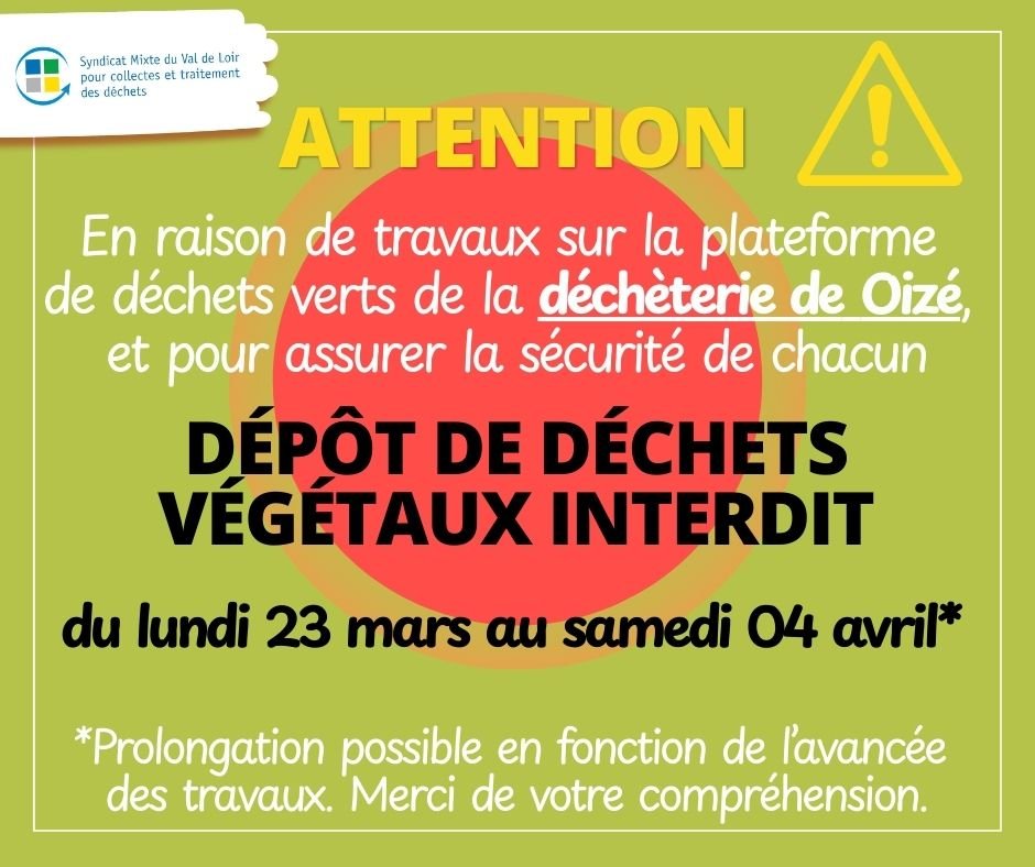DÉPÔT DE DÉCHETS VERTS INTERDIT À LA DÉCHÈTERIE DE OIZÉ