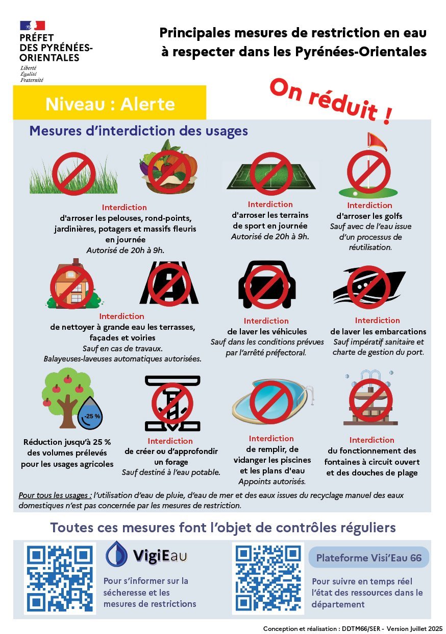 Plusieurs usages de l’eau sont interdits ou limités :