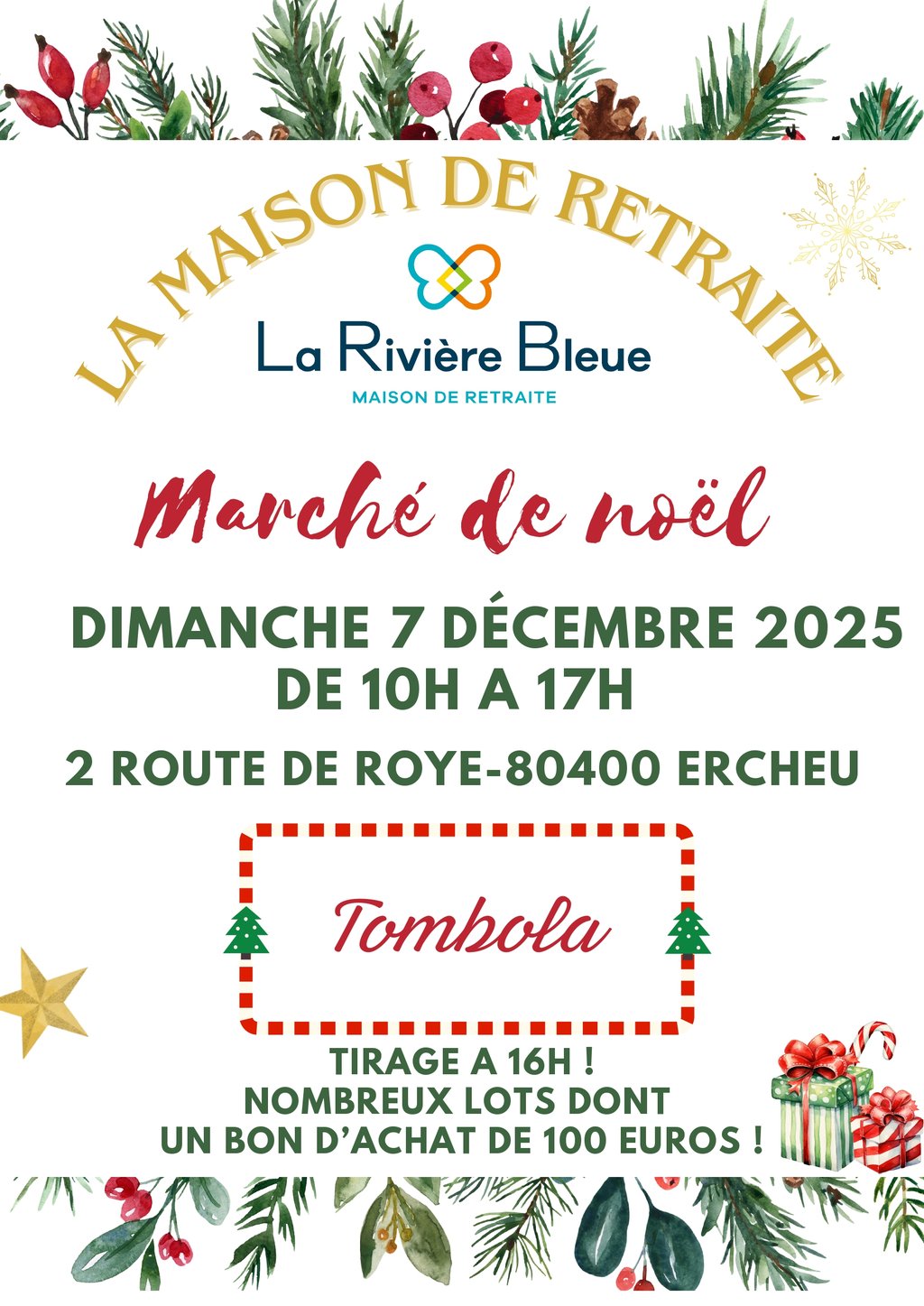 La maison de retraite "La rivière bleue", 2 route de Roye, organise un marché de Noël ouvert à tous le dimanche 7 décembre de 10h à 17h 🎄🎅.