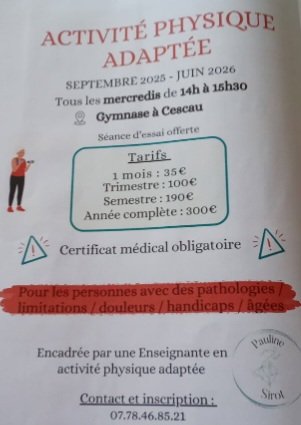 la gym le mercredi après-midi de 14h à 15h30 aura lieu dans la salle des associations de Cescau et plus dans la Salle Emile Labadesse.