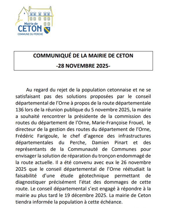 COMMUNIQUÉ DE LA MAIRIE DE CETON