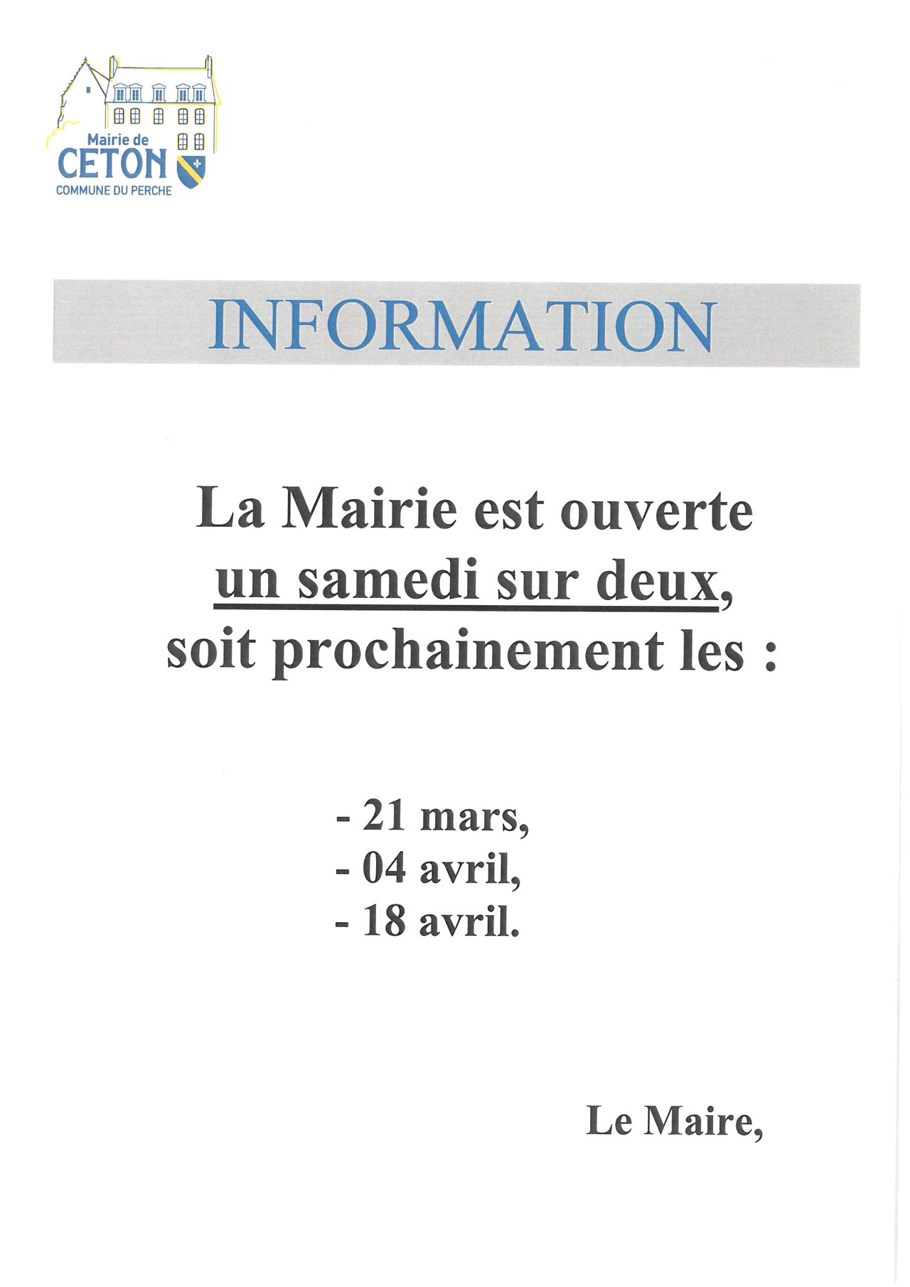 DATES D'OUVERTURE DE LA MAIRIE LES PR...