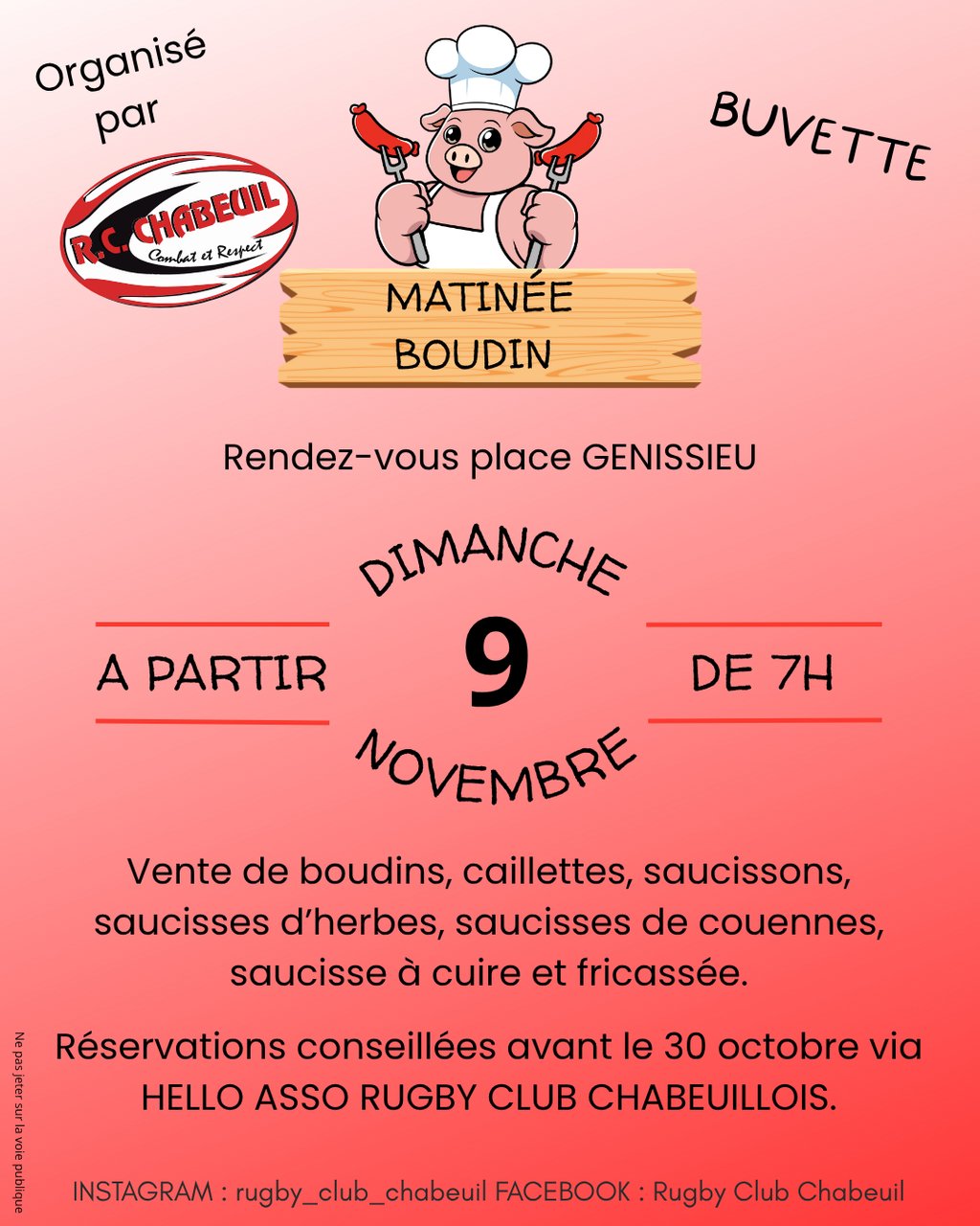 🍽 MATINÉE BOUDIN – RUGBY CLUB DE CHABEUIL 🏉