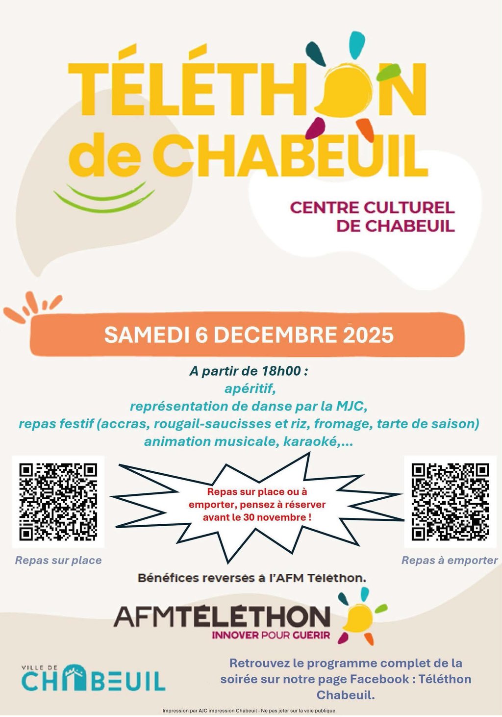 Réservation : Il est impératif de réserver avant le 30 novembre.