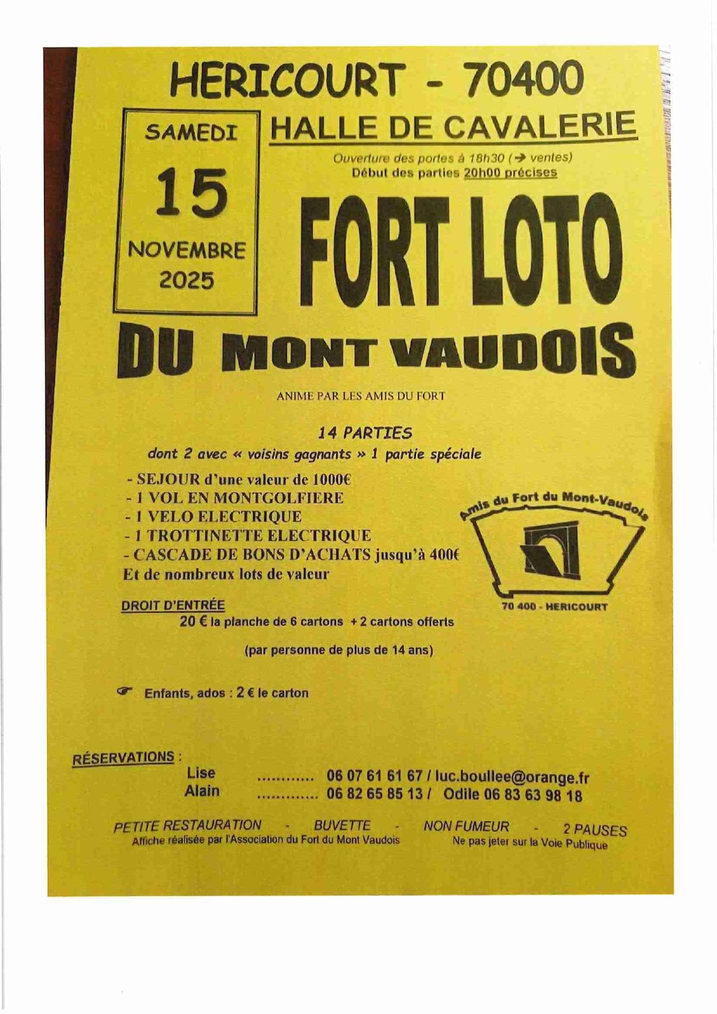 L'association des Amis du Fort du Mont Vaudois organise son loto annuel le :