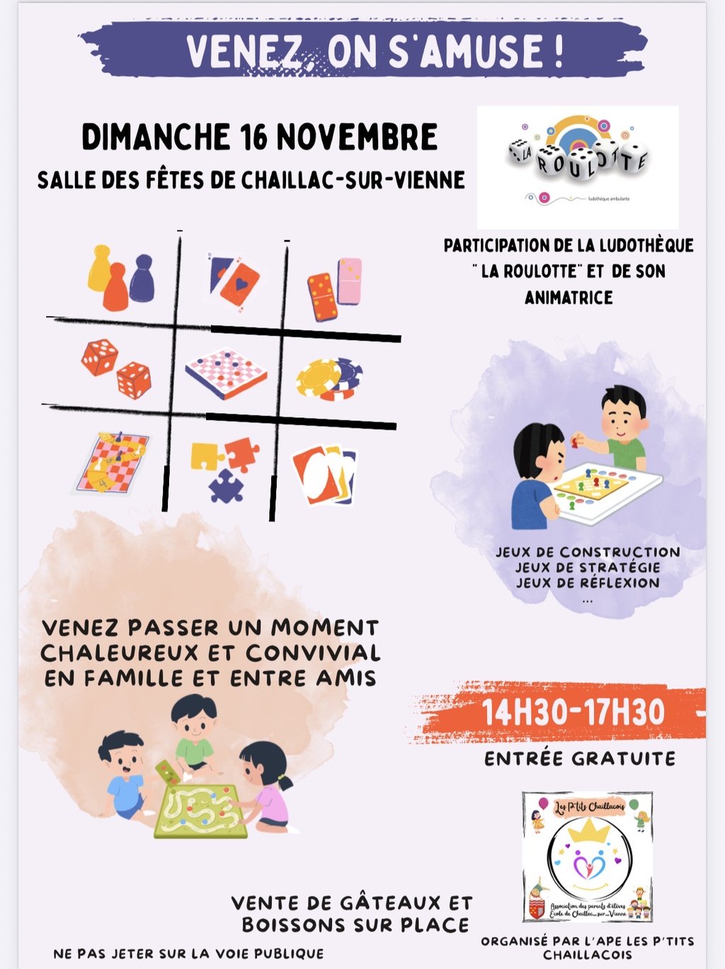 L'APE Les P'tits Chaillacois vous propose de venir passer un moment chaleureux et convivial en famille ou entre amis.