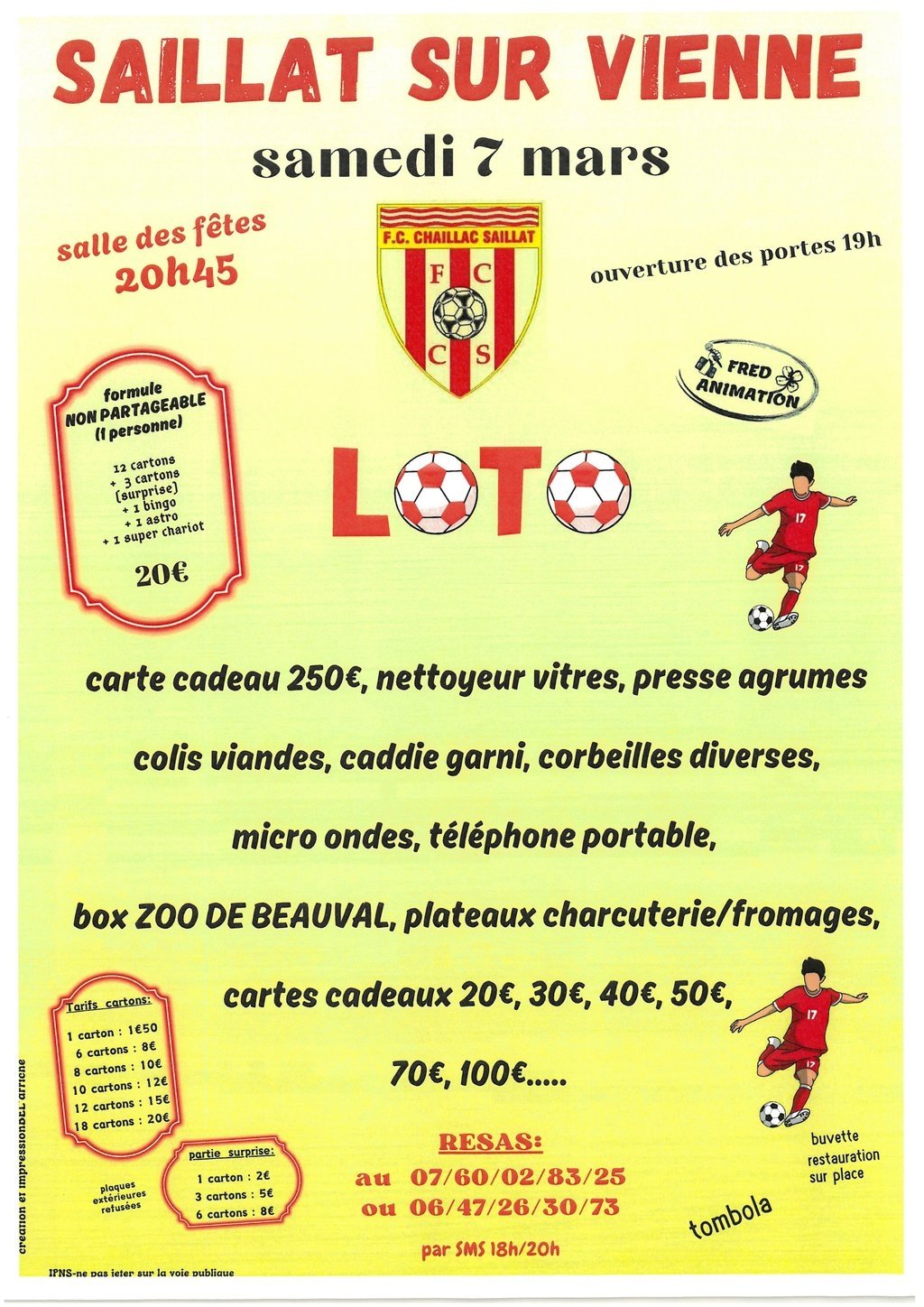 ⚽Le F.C CHAILLAC SAILLAT ⚽ organise son loto