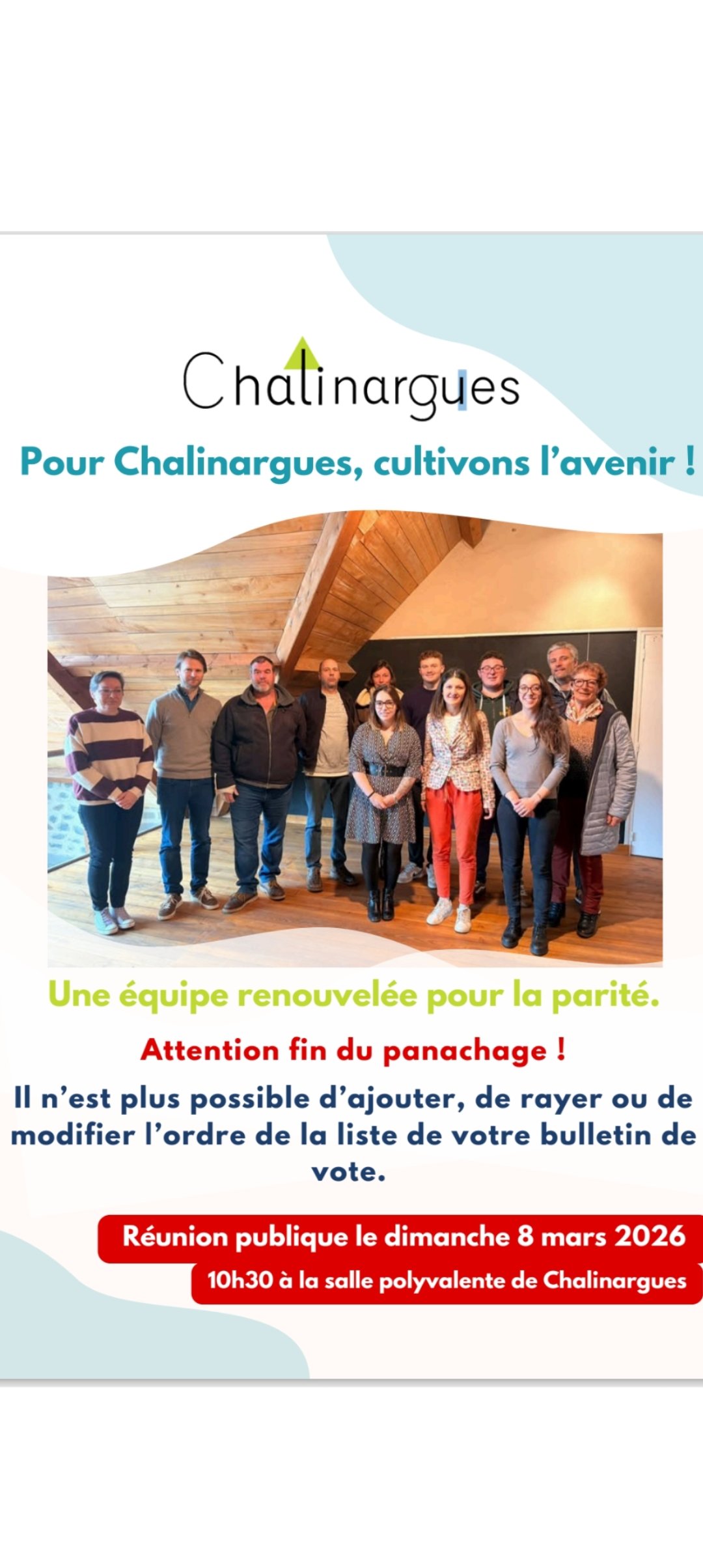 La liste candidate aux élections municipales du 15 mars 2026 vous propose une réunion publique.