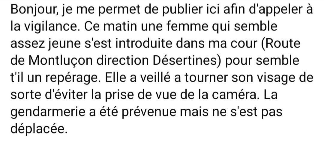 Une personne semblant faire du repérage s'est introduite ce matin dans une propriété route de Montluçon.