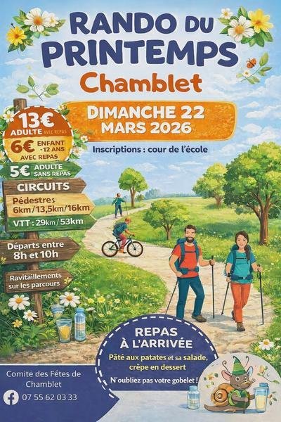 Le Comité des Fêtes de Chamblet vous invite à participer à la Rando du Printemps, le dimanche 22 mars 2026.