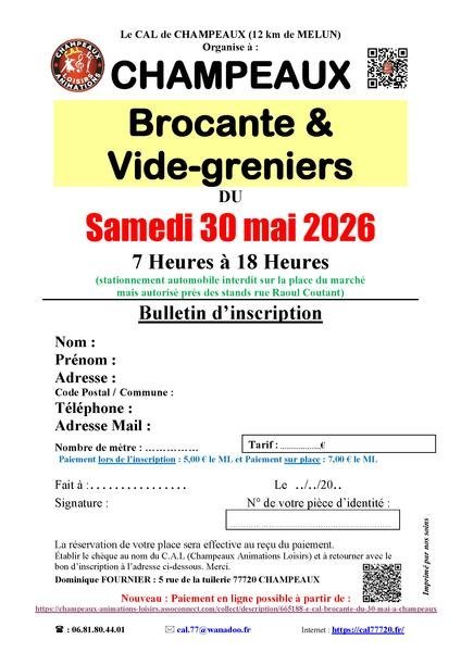 L'association Champeaux Animations Loisirs organise une brocante/vide-greniers à Champeaux. Elle se déroulera sur la place du marché et rue Raoul Coutant, toute la journée, avec possibilité de se restaurer sur place !