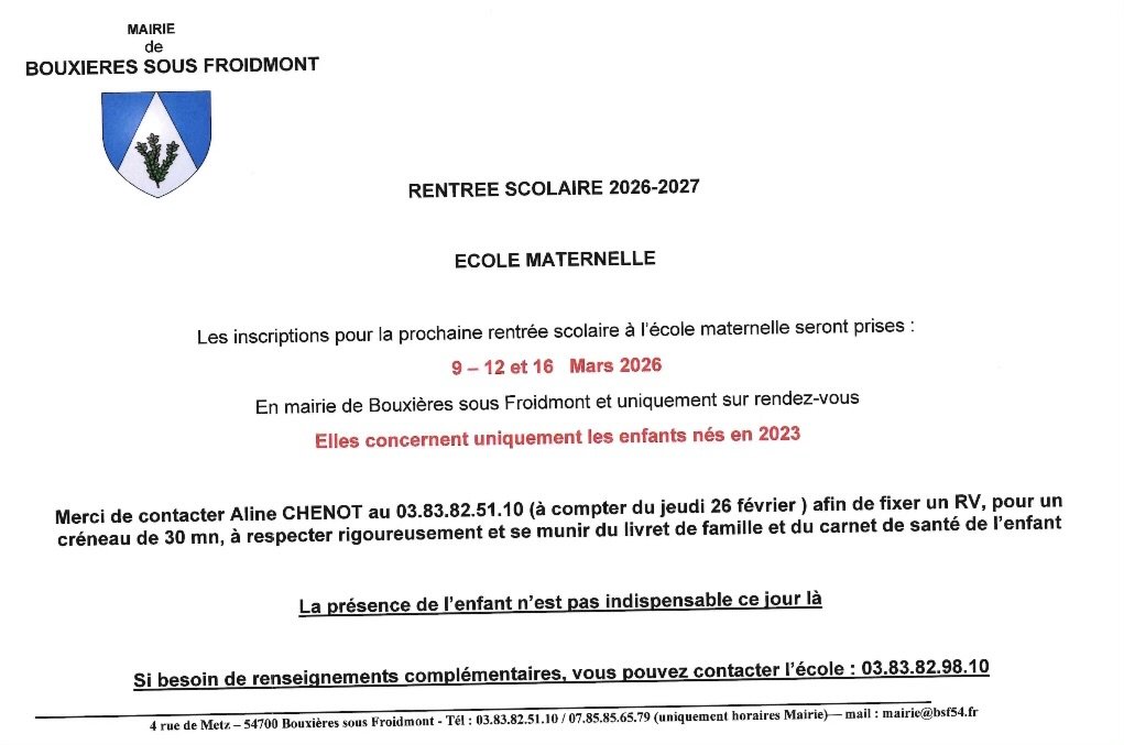 N oubliez pas d inscrire vos enfants uniquement ceux nés en 2023 pour la prochaine rentrée en maternelle.