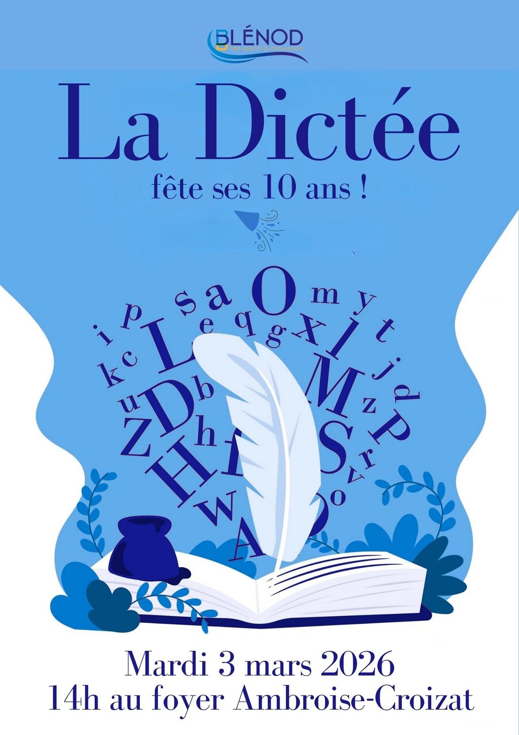 La ville de Blénod vous invite à une animation dictée spéciale seniors, que vous soyez un as de l'orthographe ou simplement curieux, rendez-vous :